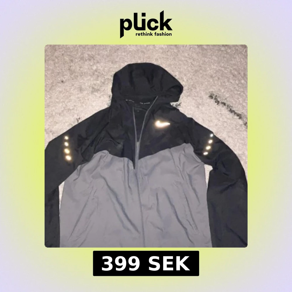 Nike vindjacka i svart och grått med huva och dragkedja. Jackan har reflekterande detaljer på axlar och rygg samt en vit Nike-logga på bröstet. Tillverkad i lätt och smidigt material, perfekt för blåsiga dagar. Sportig design med tvådelad färgblock.