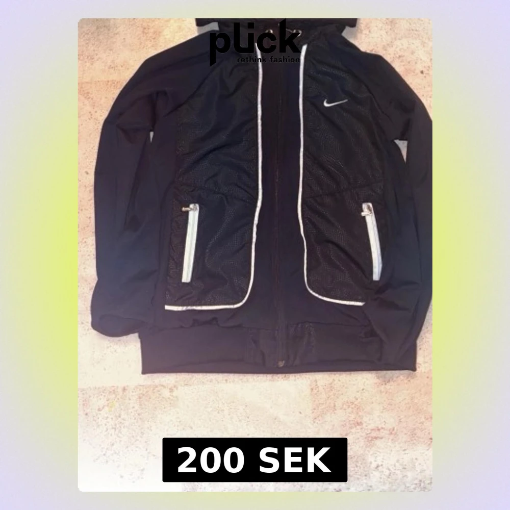 Snygg svart tröja från Nike med vita dragkedjor och detaljer. Jackan har huva med dragsko, två fickor framtill och diskret Nike-logga på bröstet. Perfekt för en sportig och avslappnad stil.