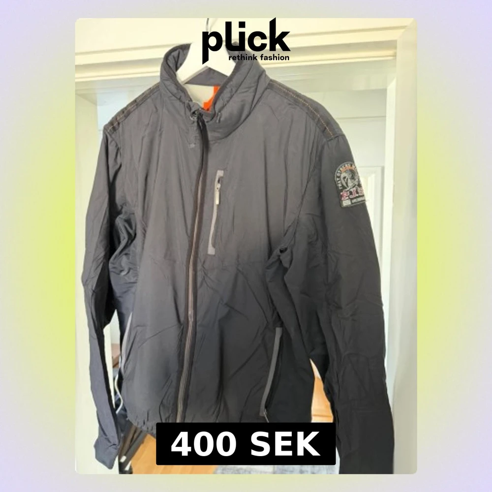 Snygg mörkgrå vindjacka från Parajumpers med dragkedja framtill, bröstficka med dragkedja och två sidofickor. Jackan har hög krage och patch med logga på ärmen. Tillverkad i lätt och slitstarkt material, perfekt för blåsiga dagar.