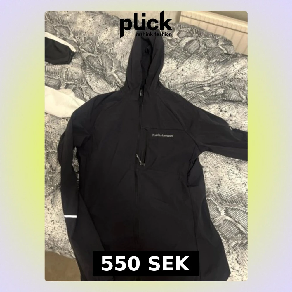Svart vindjacka från Peak Performance med huva och hel dragkedja. Jackan har en bröstficka med dragkedja och diskreta reflexdetaljer på ärmarna. Materialet är lätt och smidigt, perfekt för aktiva dagar utomhus.