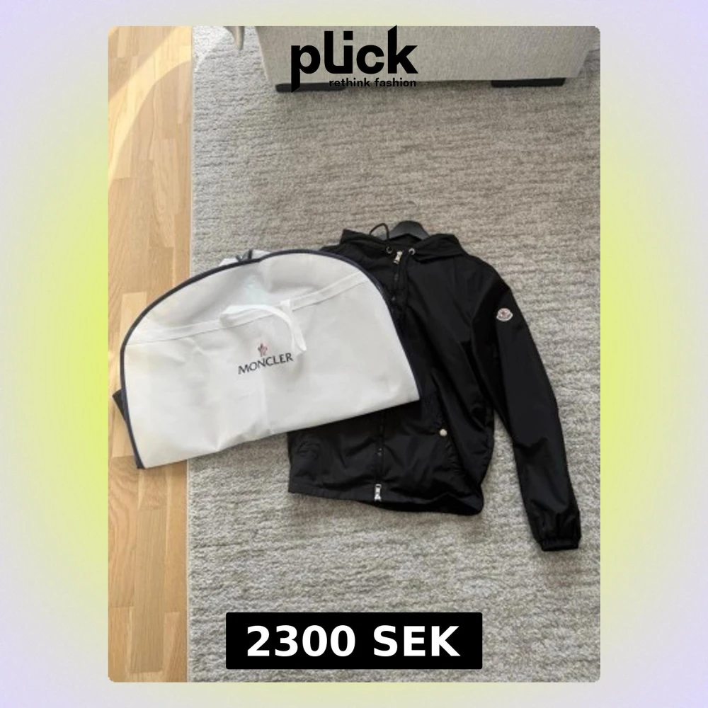 Snygg svart vindjacka från Moncler med huva woch dragkedja spå framsidan. Jackan har Moncler-logga på vänster ärm och praktiska” sidofickor med dragkedja. Tillverkad i lätt, glansigt material som står emot vind. Perfekt för dig som vill ha en stilren och exklusiv look.