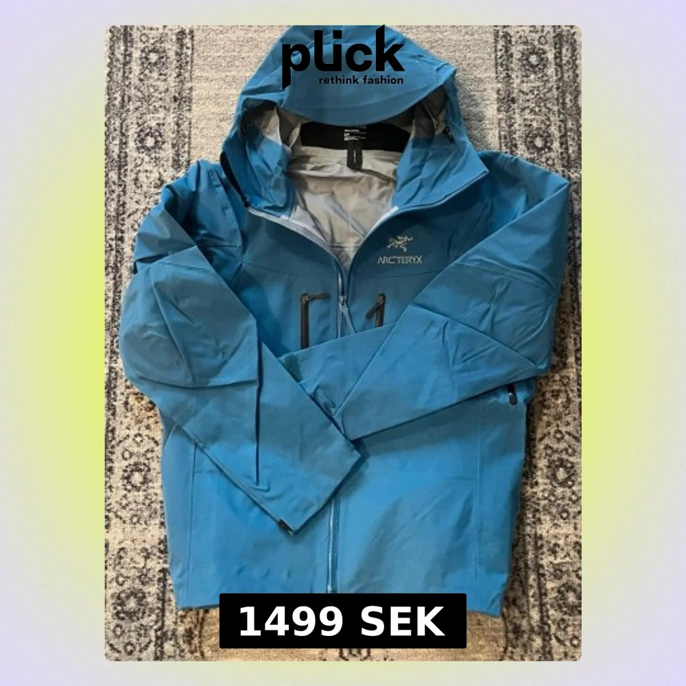 Snygg blå vindjacka från Arc'teryx med huva och hel dragkedja framtill. Jackan har två bröstfickor med dragkedja och justerbara ärmslut. Tillverkad i ett slitstarkt, vattenavvisande material som passar perfekt för utomhusaktiviteter.
