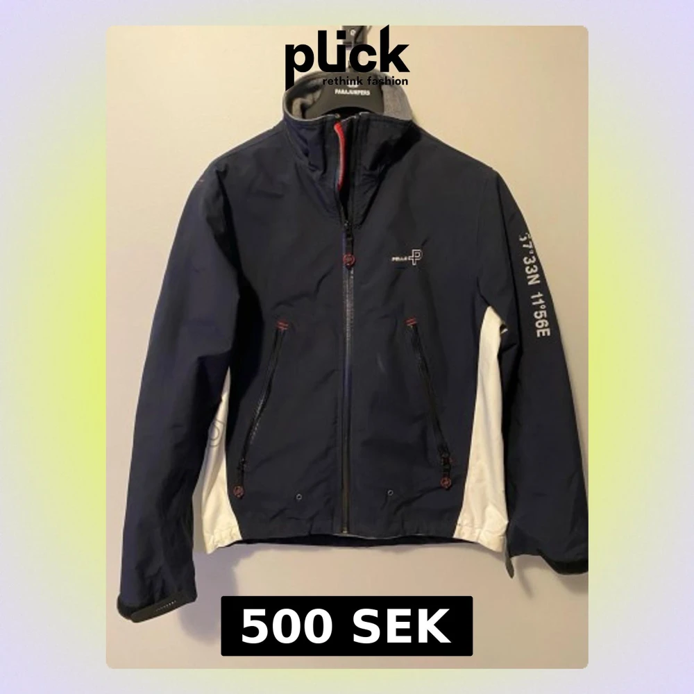 Snygg marinblå vindjacka från Pelle P med vita paneler på sidorna och diskreta röda detaljer. Jackan har hög krage, två dragkedjeförsedda fickor framtill och tryckt koordinattext på ena ärmen. Materialet är slitstarkt och vattenavvisande, perfekt för blåsiga dagar. Riktigt fräsch och snygg för de som vill komponera grisch stilen med en vindjacka, denna jacka är väldigt varm innuti så du kan använda den när de kallt ute också