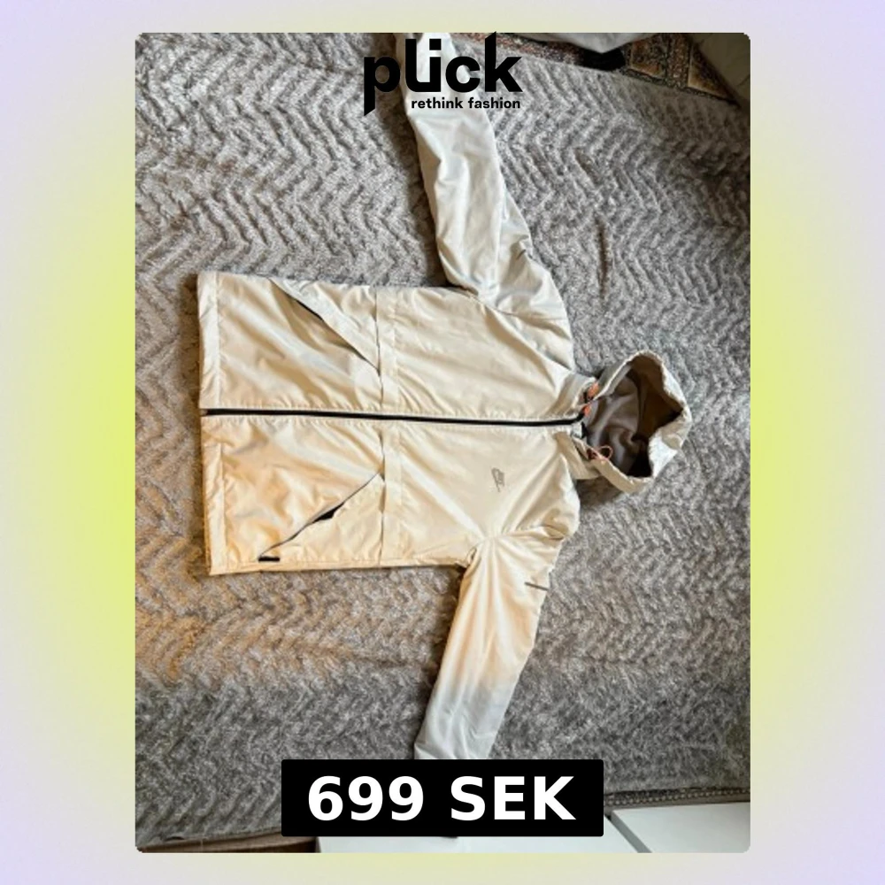 Snygg beige vindjacka från Athletic Sports med dragkedja framtill, två snedställda fickor och justerbar huva med dragsko. Jackan har ribbade muddar vid ärmsluten och tryckt logga på ryggen. Perfekt för blåsiga dagar och enkel att matcha.