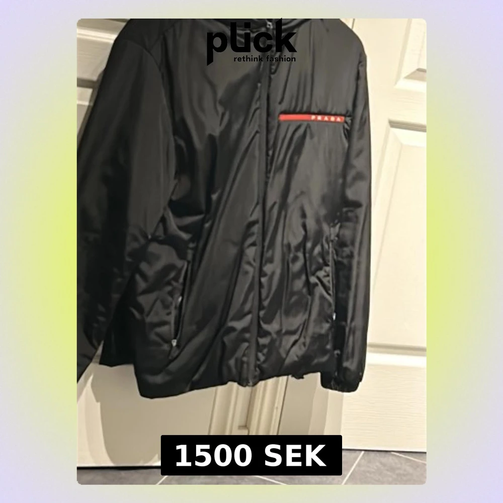 Snygg svart vindjacka från Prada med dragkedja framtill och två sidofickor. Jackan har en röd detalj med Prada-logga på bröstet och en sportig, minimalistisk design. Perfekt för dig som gillar stilrena och exklusiva plagg.
