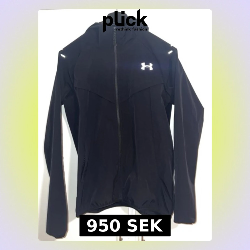 Snygg svart vindjacka från Under Armour med huva och hel dragkedja framtill. Jackan har reflekterande logga på bröstet och detaljer vid axlarna. Tillverkad i lätt och smidigt material som passar perfekt för aktiva dagar utomhus.