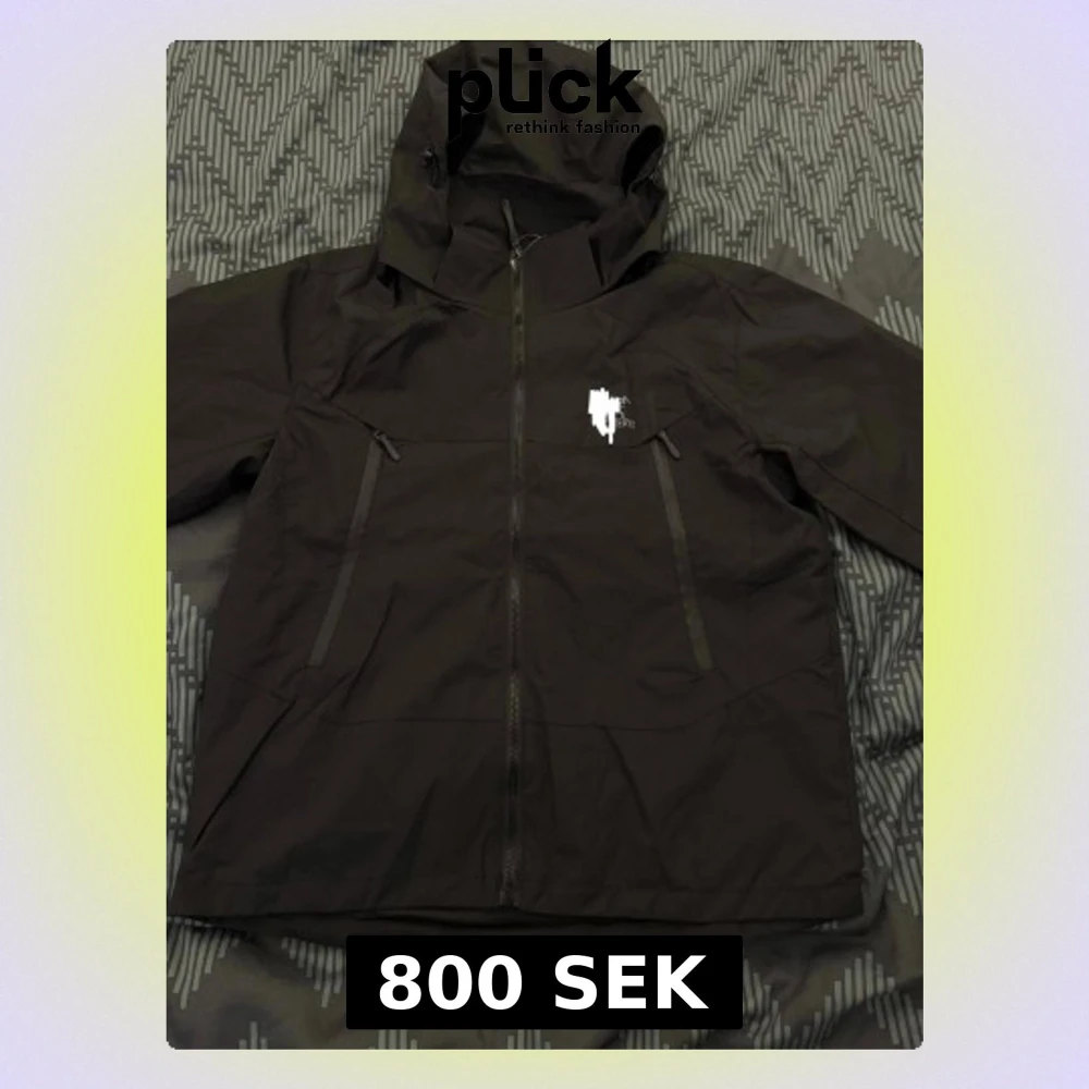 Svart Nike vindjacka med huva - Snygg svart vindjacka från Nike med vit logga på bröstet. Jackan har dragkedja framtill, två fickor med dragkedja och justerbar huva med snören. Perfekt för blåsiga dagar och enkel att matcha med olika outfits.