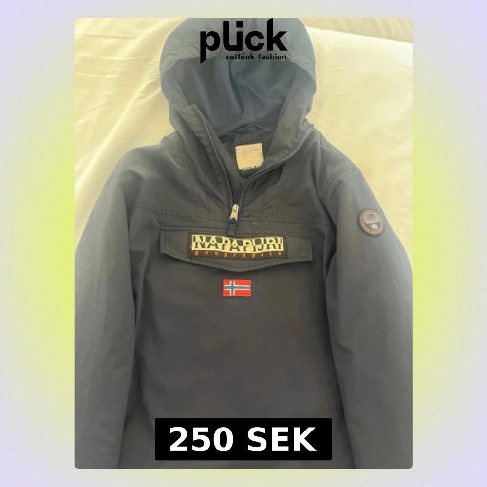 Snygg mörkblå vindjacka från Napapijri med huva och halv dragkedja. Jackan har en stor logotyp på bröstet, norsk flagga och patch på ärmen. Praktisk magficka med dragkedja och meshfoder på insidan. Perfekt för blåsiga dagar. Pris kan diskuteras vid snabb affär.