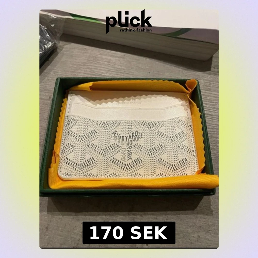 Säljer ett stilrent vitt kortfodral med det klassiska mönstret och loggan tryckt på framsidan. Fodralet har flera fack för kort och är tillverkat i exklusivt läder. Perfekt för dig som vill ha något både snyggt och praktiskt i fickan.