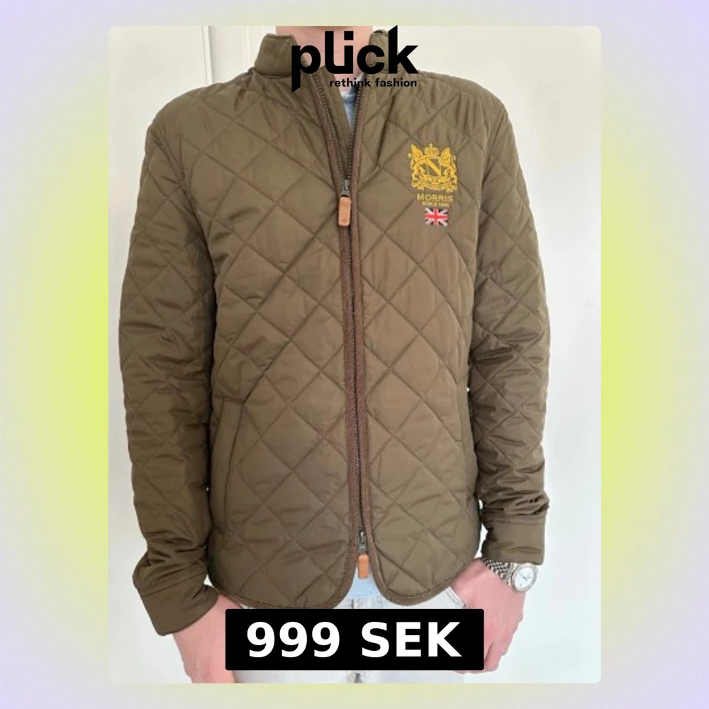 Snygg olivgrön vindjacka från Morris med quiltat mönster och gul brodyr på bröstet samt brittisk flagga. Jackan har hög krage, dragkedja framtill med läderdetalj och rundad nederkant. Tillverkad i lätt och smidigt material som passar perfekt till säsongens outfits. Skriv gärna om ni har frågor eller vill diskutera priset! Ordinarie pris 2199kr.