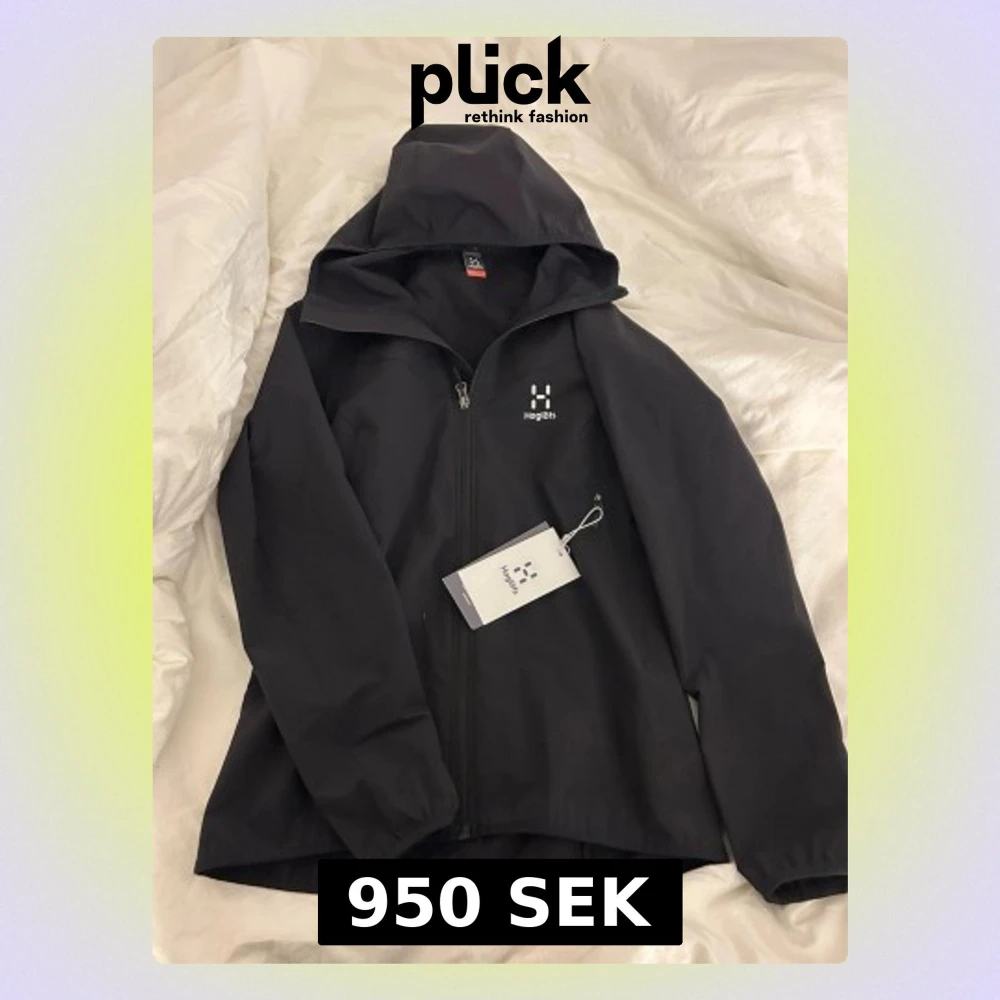 Helt ny köpt på xxl för 1750kr Snygg svart vindjacka från Haglöfs med dragkedja framtill och justerbar huva. Jackan har minimalistisk design med logga på bröstet och är tillverkad i ett lätt, vindtätt material.