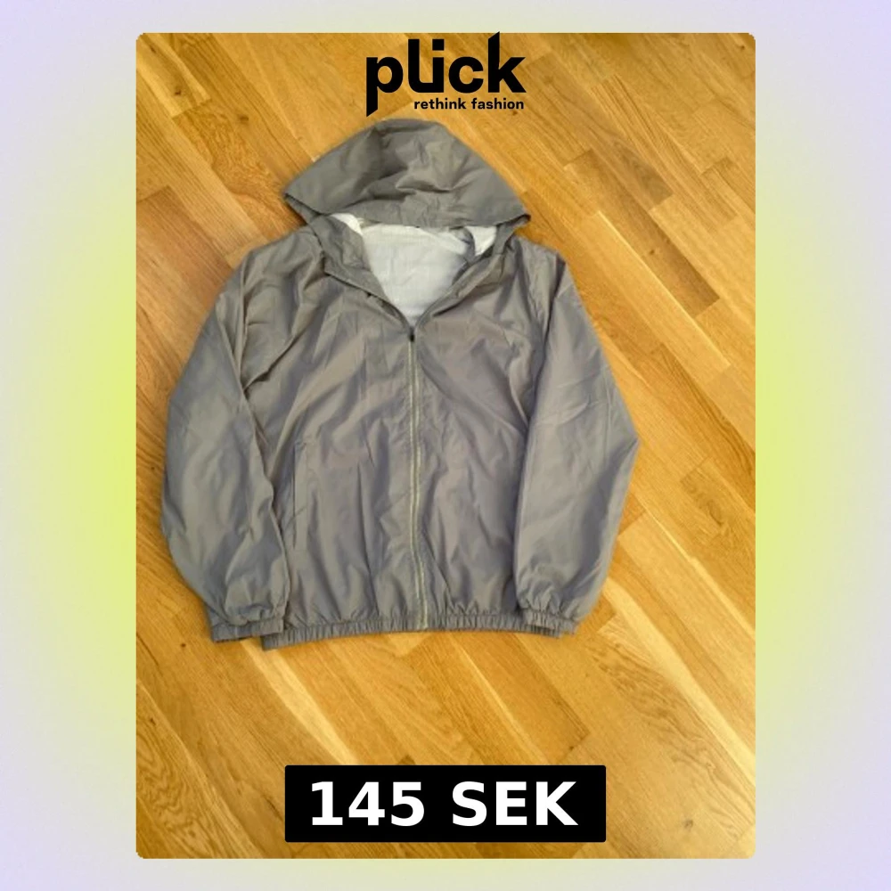 En stilren grå vindjacka med dragkedja framtill och två sidofickor. Jackan har elastiska muddar vid ärmslut och nederkant samt en praktisk huva. Tillverkad i lätt och tunt material, perfekt för blåsiga dagar.