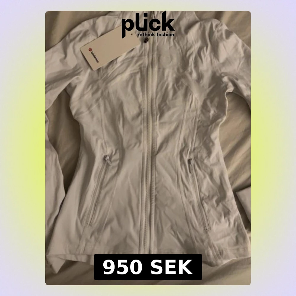 Snygg vit sportjacka från Lululemon med figurnära passform och hel dragkedja framtill. Jackan har två dragkedjeförsedda fickor och diskret logga på ryggen. Tillverkad i ett stretchigt och lätt material som passar perfekt för träning eller utomhusaktiviteter.