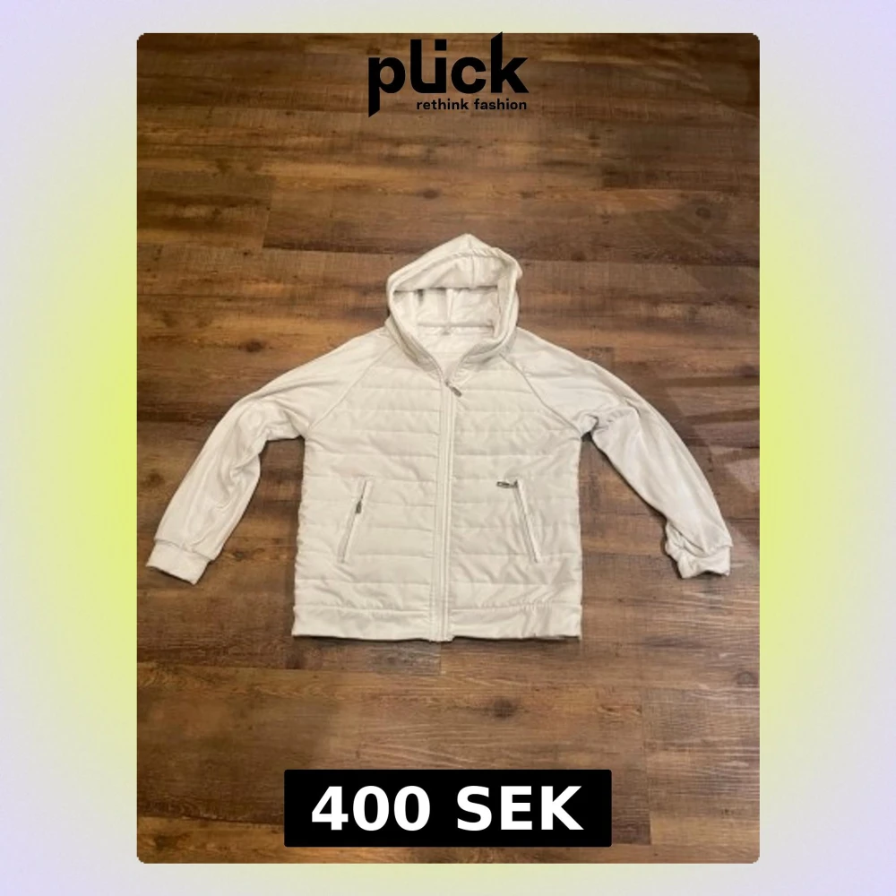 Stilren vit vindjacka med quiltat mönster och dragkedja framtill. Jackan har två fickor med dragkedja och en praktisk huva. Perfekt för blåsiga dagar och enkel att matcha med olika outfits. Tillverkad i lätt material för extra komfort.