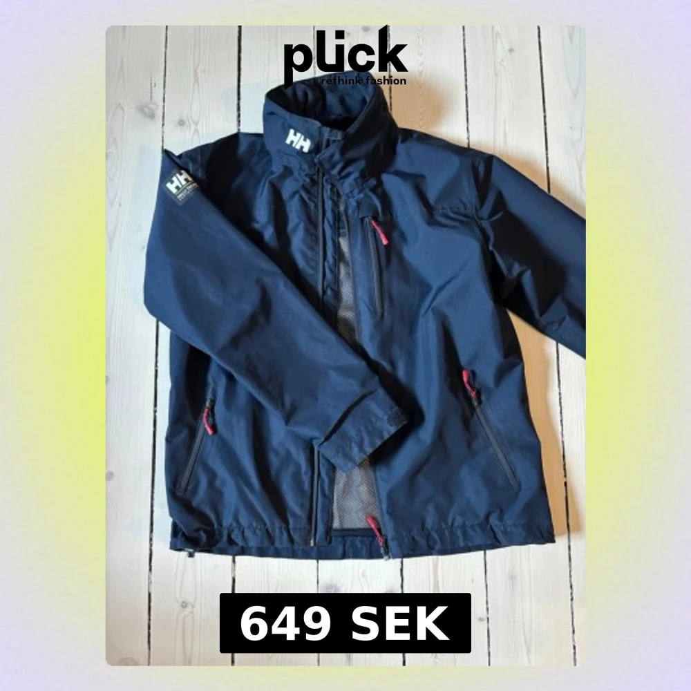Snygg marinblå vindjacka från Helly Hansen med hög krage, meshfoder och dragkedjor med röda detaljer. Jackan har tre fickor med dragkedja och HH-logga på bröstet och ärmen. Perfekt för blåsiga dagar och outdoor-aktiviteter. Den är i storlek 176cm men den passar som en XS eller mindre S! Köpte den på Helly Hansens egna hemsida för några månader sedan men växte tyvärr ur den! Varan skickas inom 24 h efter köp, hör av dig vid minsta fråga.
