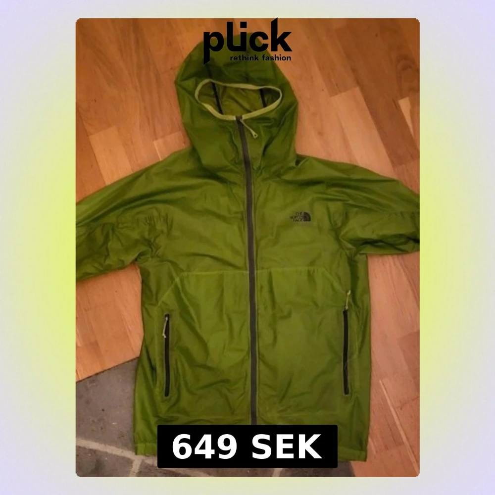 Snygg grön vindjacka från The North Face. Jättefin har ett pytte hål och pyttefläck som inye märks av se markeringar