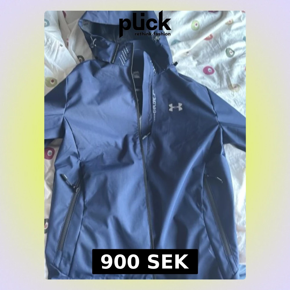 Snygg blå vindjacka från Under Armour med huva och dragkedja framtill. Jackan har två dragkedjeförsedda fickor på sidorna och en diskret logga på bröstet. Perfekt för blåsiga dagar och sportiga outfits. Den är Vattentätt