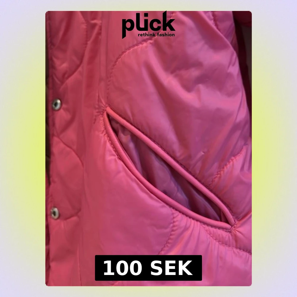 Säljer en quiltad vindjacka med coolt mönster och tryckknappar. Jackan har två färger: rosa på ena sidan och beige på andra, vilket gör den vändbar. Materialet är glansigt och syntetiskt, perfekt för att hålla vinden borta. Praktiska fickor på båda sidor.