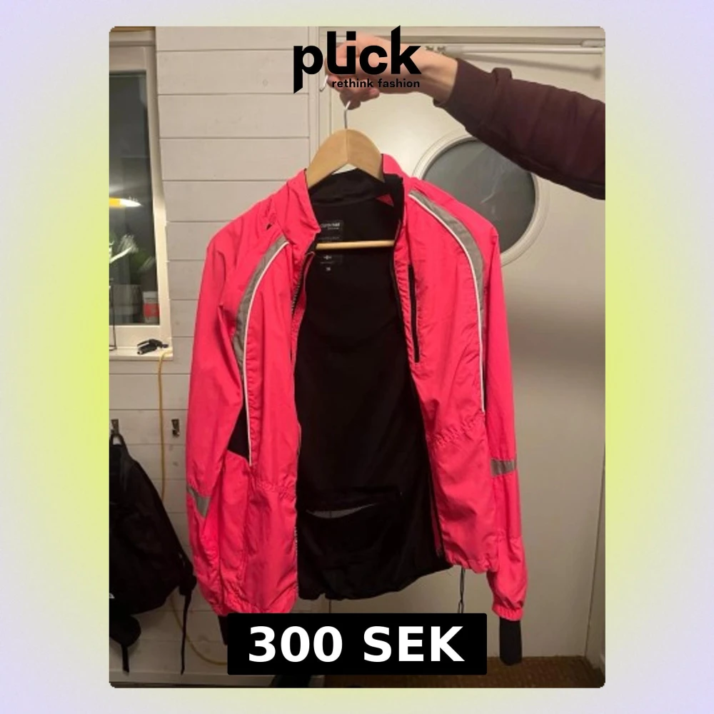 Säljer en rosa tunn jacka perfekt för att kunna springa i. Jackan är inte använd mycket och är i storlek 36.