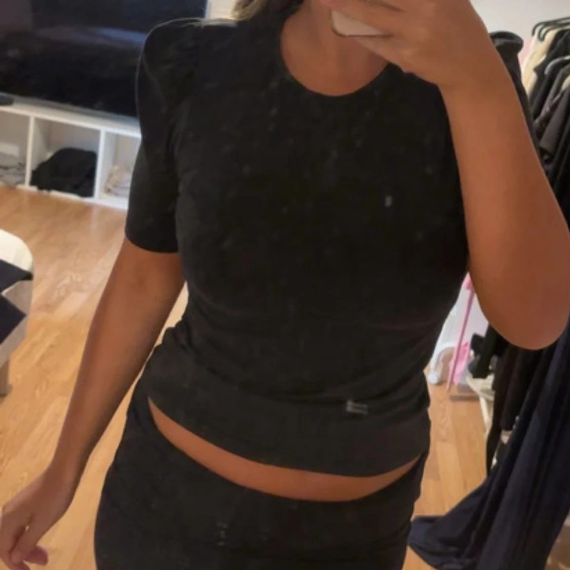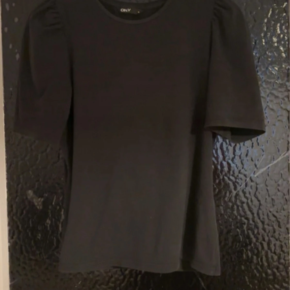 Svart topp från ONLY med puffade axlar och korta ärmar. Modellen är figurnära och har en klassisk rund halsringning. Perfekt att styla med både jeans och kjol för en trendig look.