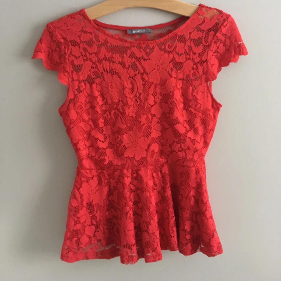 Jätte fin spets topp från Gina. Färgen är mer röd/mörkröd i verkligheten. Köparen står för frakten