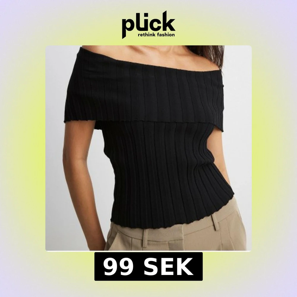 Svart offshoulder ribbad topp