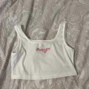 en vit topp med rosa text