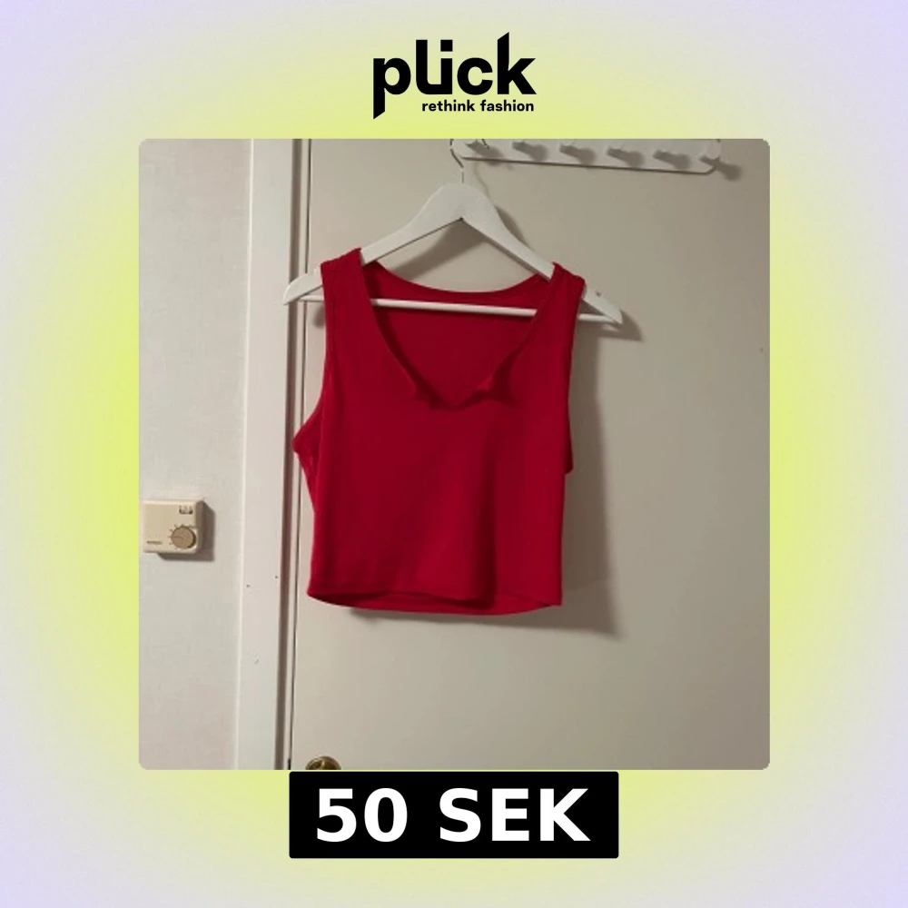 Snygg röd croppad linnetopp från SHEIN i 100% polyester. Toppen har breda axelband och v-ringad hals, perfekt för att lyfta vilken outfit som helst. Enkel och stilren design som passar dig som gillar färg och vill sticka ut. Katt finns i hemmet