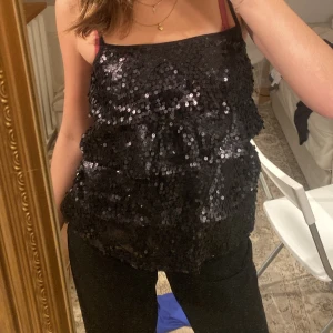 Svart satinspetstopp från Zara🤗 - Supersnygg slutsåld satinspetstopp från Zara, endast använd en gång!🥰💕