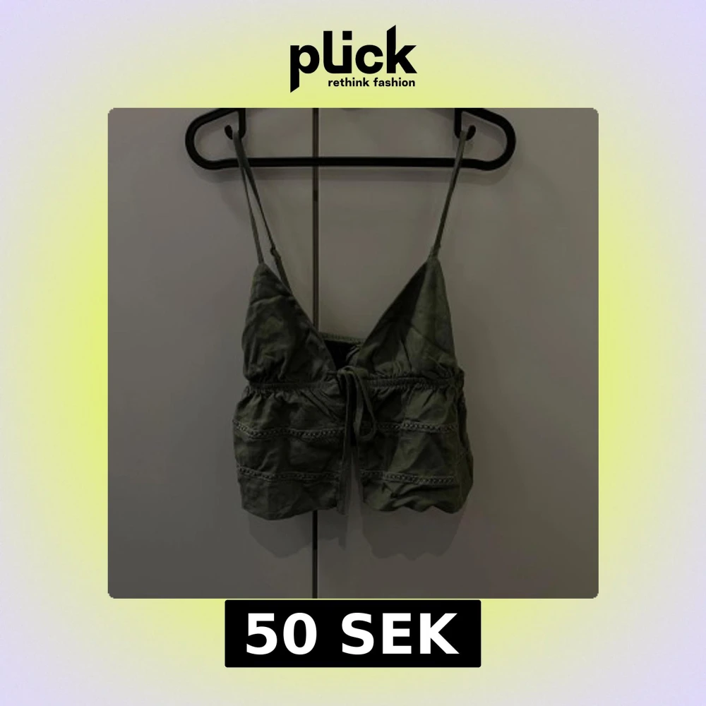 Snygg olivgrön linnetopp med smala axelband och spetsdetaljer. Toppen har en knytning framtill och en luftig passform, perfekt för varma dagar.
