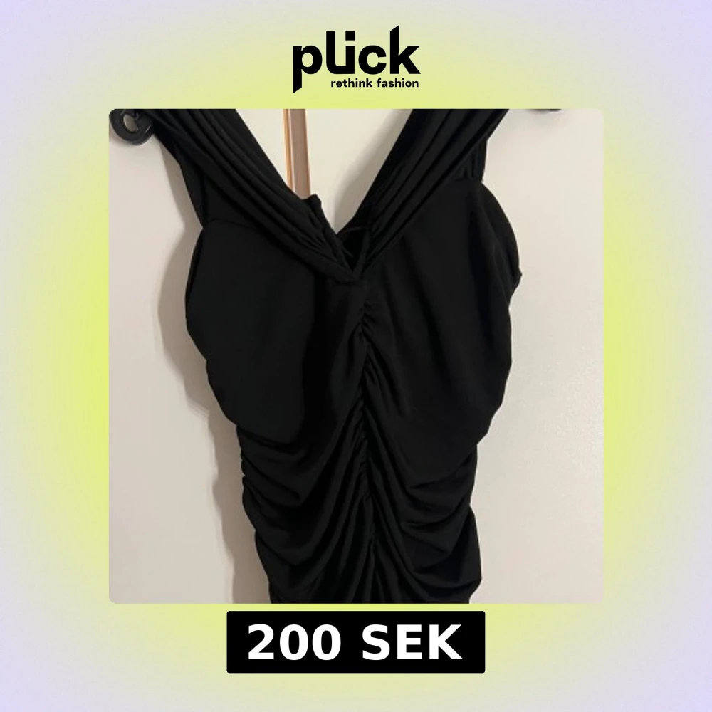 Säljer ett linne med djup v-ringning och snygg omlott-detalj. Linnet har draperad effekt framtill och är ärmlös, vilket ger en cool och trendig look. Perfekt för dig som gillar stilrena plagg med twist.