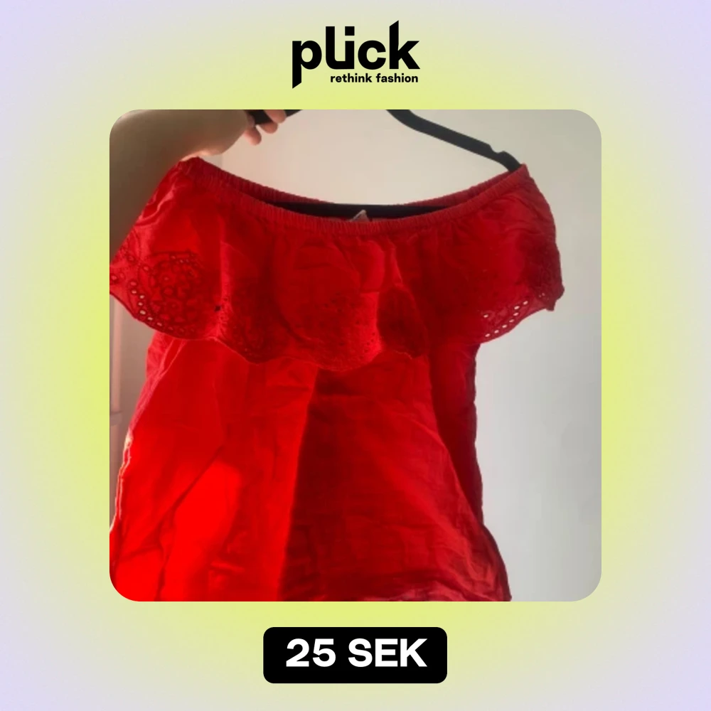 Säljer en superfin röd offshoulder topp med vackra spetsdetaljer. Perfekt för sommardagar eller en festlig kväll. Toppen är ärmlös och har en luftig passform som gör den bekväm att bära.