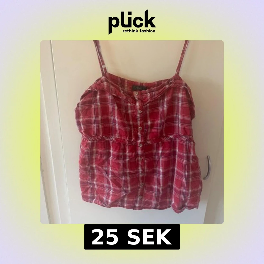 Säljer en röd och vit rutig linnetopp från Dce i storlek 46. Toppen har smala axelband, knappar framtill och en avslappnad passform. Perfekt för varma dagar när du vill ha en chill och snygg look.