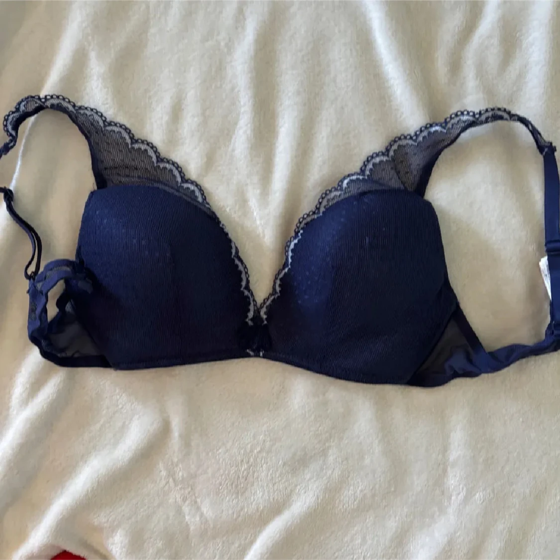 Fin marinblå spets bh, nästan oanvänd. Storlek 75b men passar även också som 75a