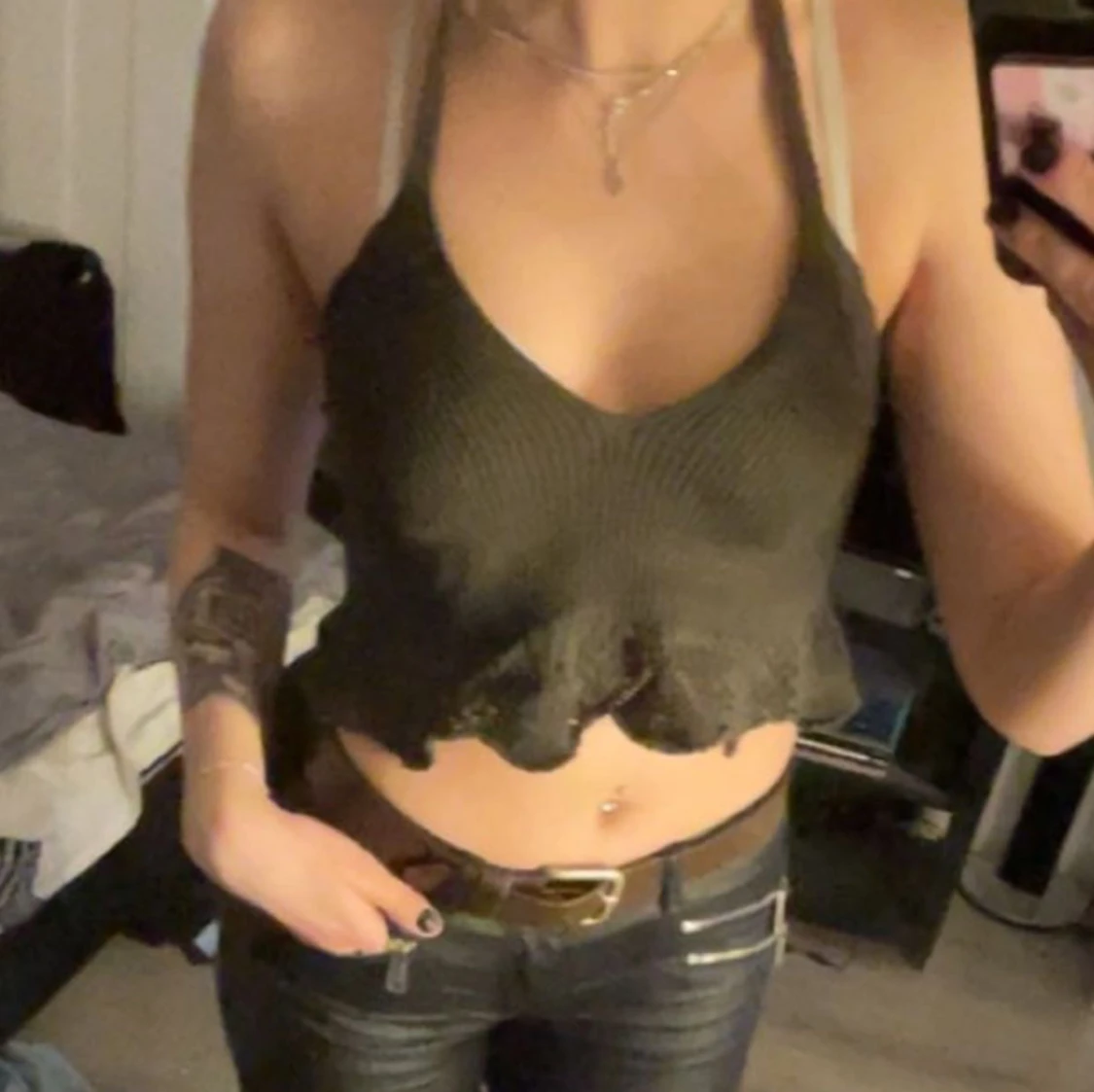 Kort halterneck topp, köpt i turkiet tror jag. Aldrig använd då den var för stor på mig som har stl S.
