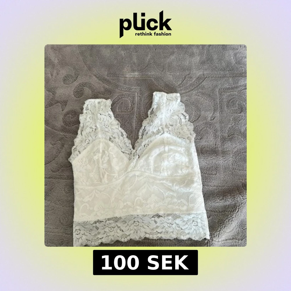 Säljer en vit linnetopp från Amisu i storlek XS. Toppen är gjord i mjuk spets med blommigt mönster och har en v-ringad form både fram och bak. Den är ärmlös och har en croppad passning med bred spetskant nedtill. Perfekt för dig som gillar romantisk stil.