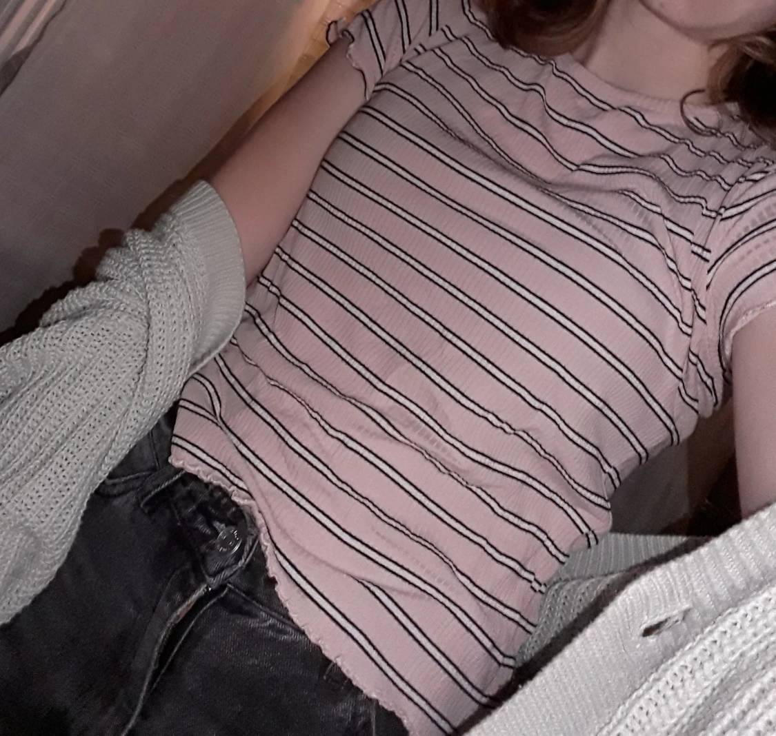 Söt randig topp från Lindex, passar bra med koftor. St 148-156 cm men sitter löst på mig som är 160 cm.