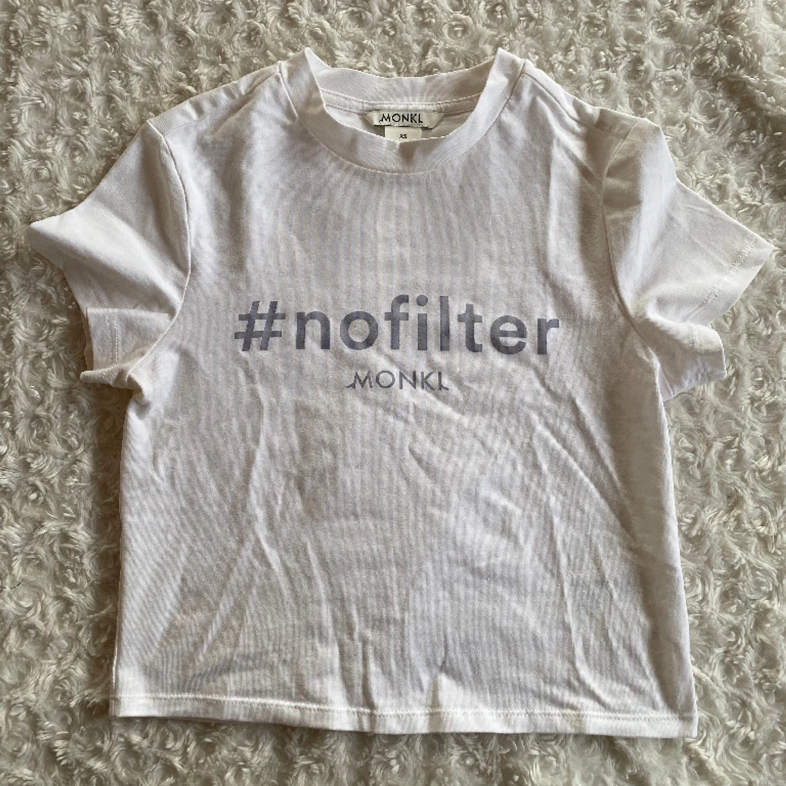 Så söt babytee från monki med texten #nofilter ;) Storlek XS, men passar mig som brukar ha S! Nyskick! Hör av dig om du har frågor 💋