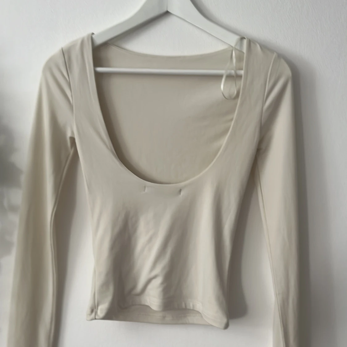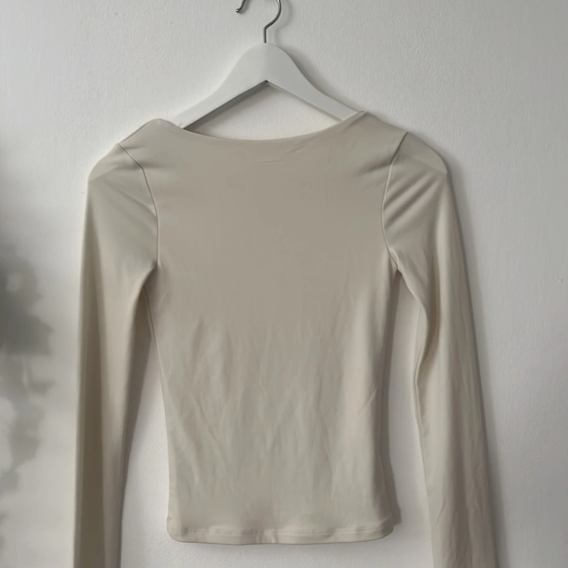 tight creme vit långärmad tröja med låg rygg, jätte fin men endast använd en gång därför säljer jag🫧🐚