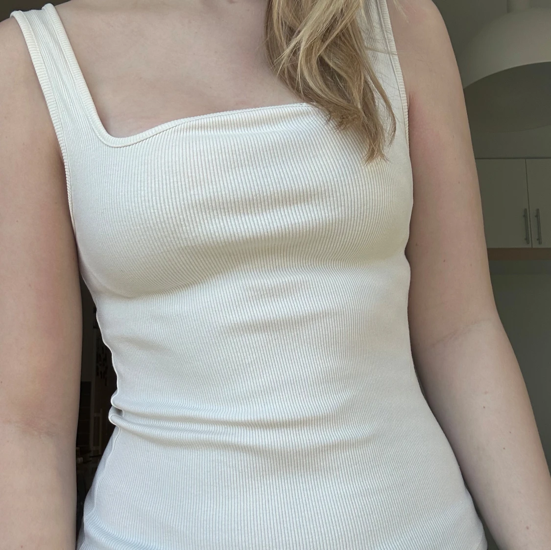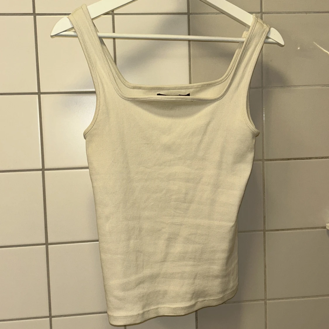 Benvit ribbad linnetopp med breda axelband. Perfekt basplagg, för sig eller ha under någonting.