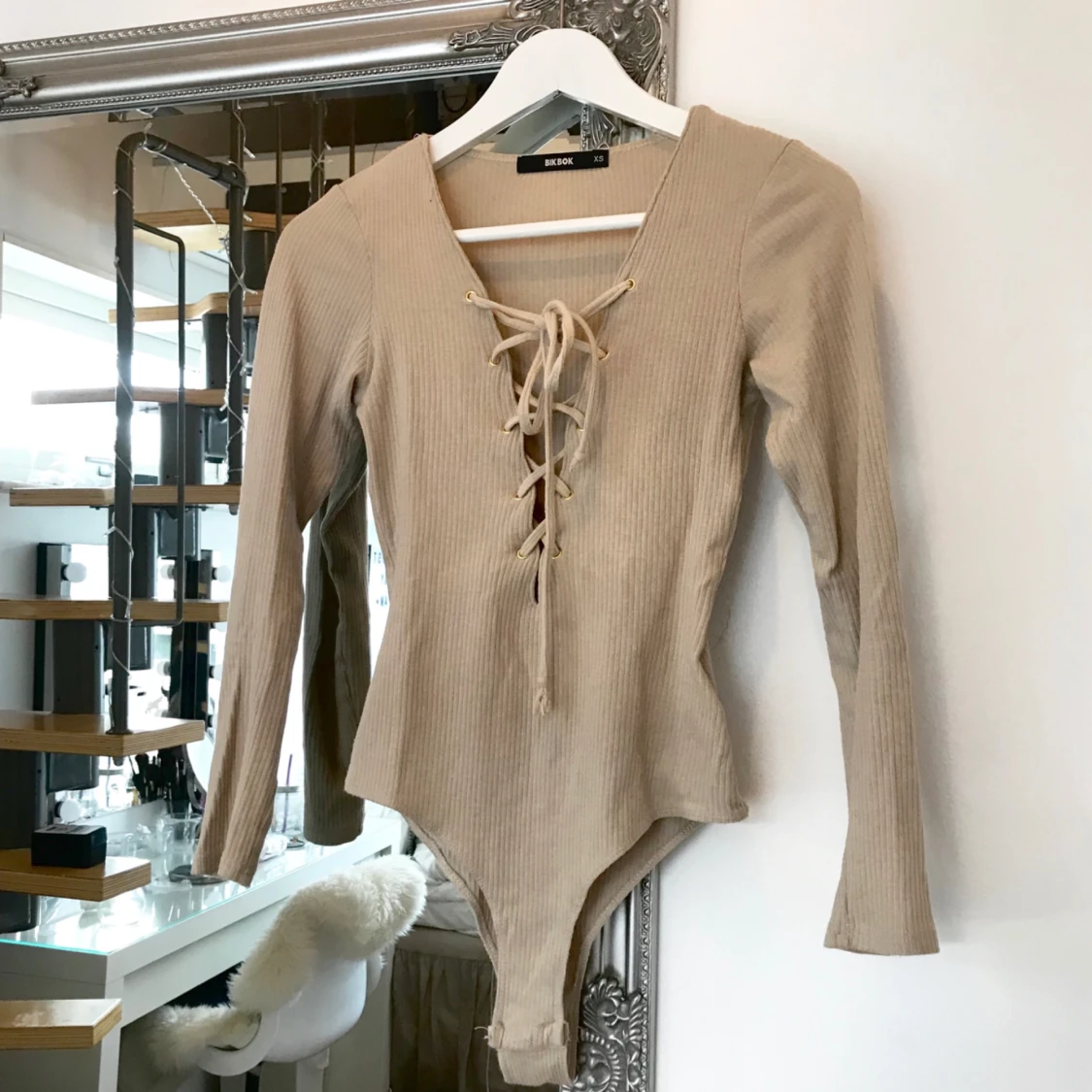 Beige ribbad body med snörning, hur snygg och skön som helst! Endast använd ett fåtal gånger. Priset är inklusive frakt.