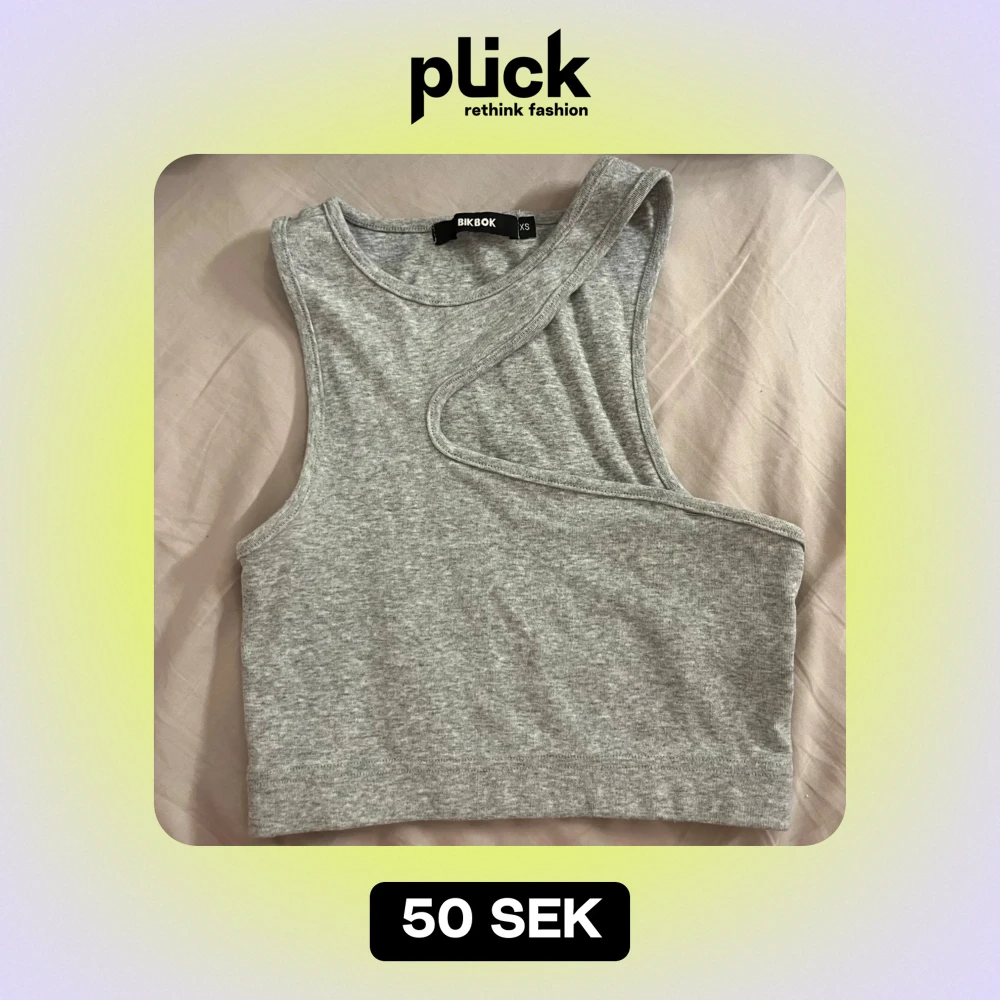 Säljer en grå oneshoulder topp från Bik Bok i storlek XS. Toppen är ärmlös och har en unik asymmetrisk design som ger en cool look. Perfekt för sommardagar eller en avslappnad utekväll. Materialet är mjukt och stretchigt för en bekväm passform.
