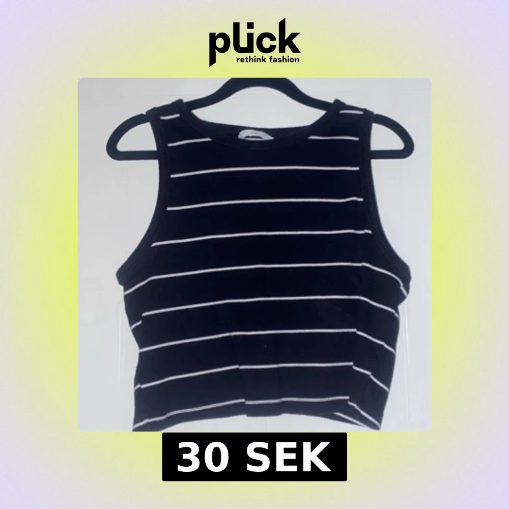Snygg svart linnetopp med vita ränder. Använd fåtal gånger och i perfekt skick! Säljer pga att den inte kommer till användning. Väldigt stretchig så upplever att den är från S-L :)