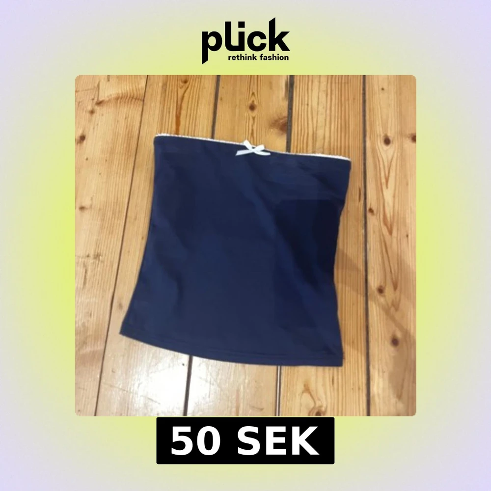 Snygg mörkblå bandeau tubtopp med vit rosett upptill och diskret kantdetalj. Tillverkad i mjuk och stretchig polyesterblandning som sitter skönt mot kroppen. Perfekt för dig som gillar minimalistisk stil och vill ha en enkel topp att matcha med dina favoritjeans.