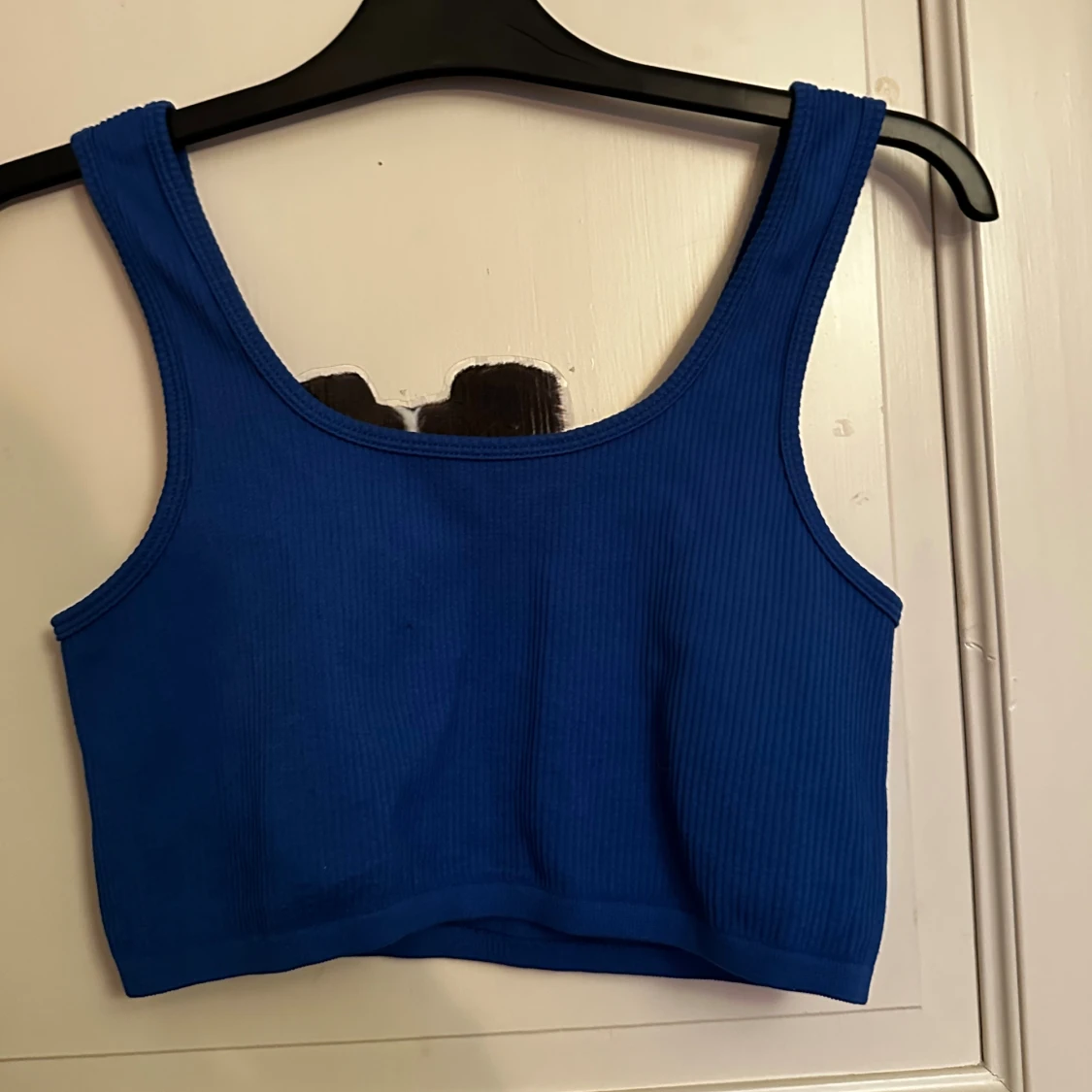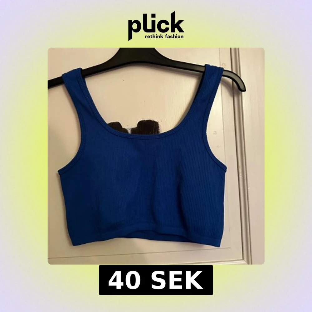 Säljer en snygg blå linnetopp med ribbad struktur. Toppen är croppad