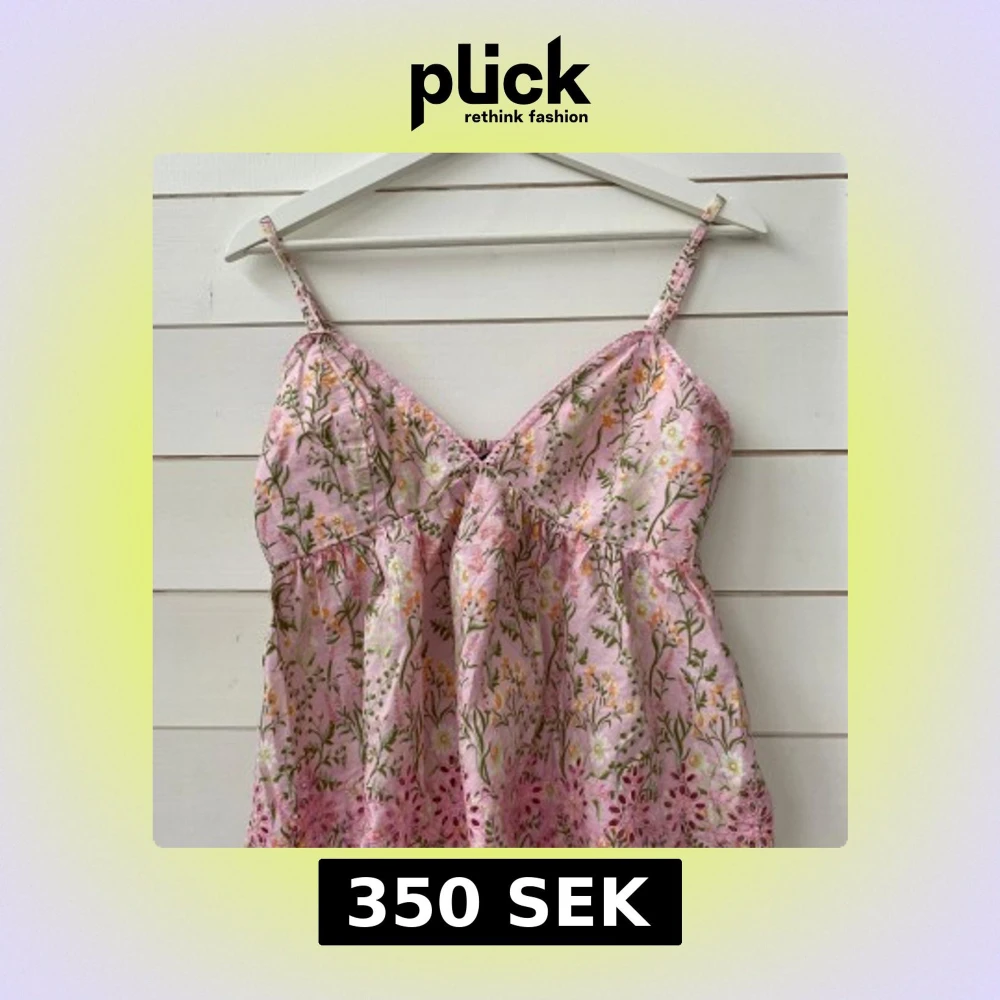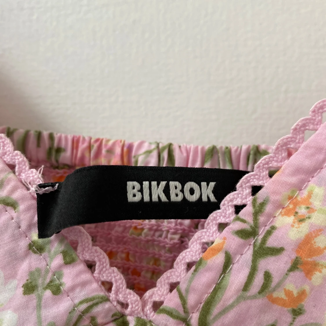 Söt rosa topp från BikBok med blommigt mönster. Den har smala axelband och v-ringad. Aldrig använd.