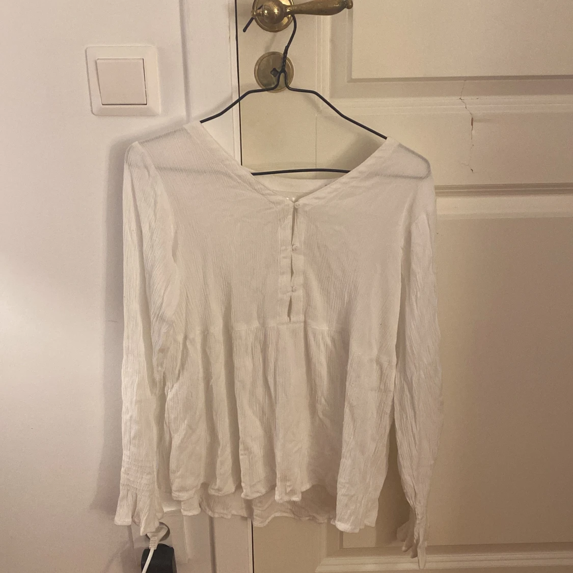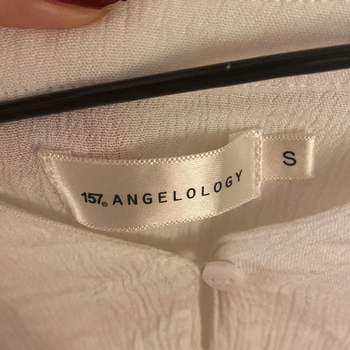 Säljer en söt vit blus från Angelology i storlek S. Blusen har långa ärmar och en knappdetalj framtill. Perfekt för en stilren och avslappnad look. 💗