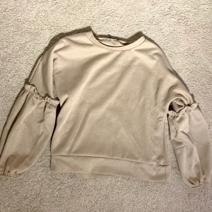Beige-glittrig blus med ballongärmar från Boohoo. Använt ett antal gånger men bra skick.