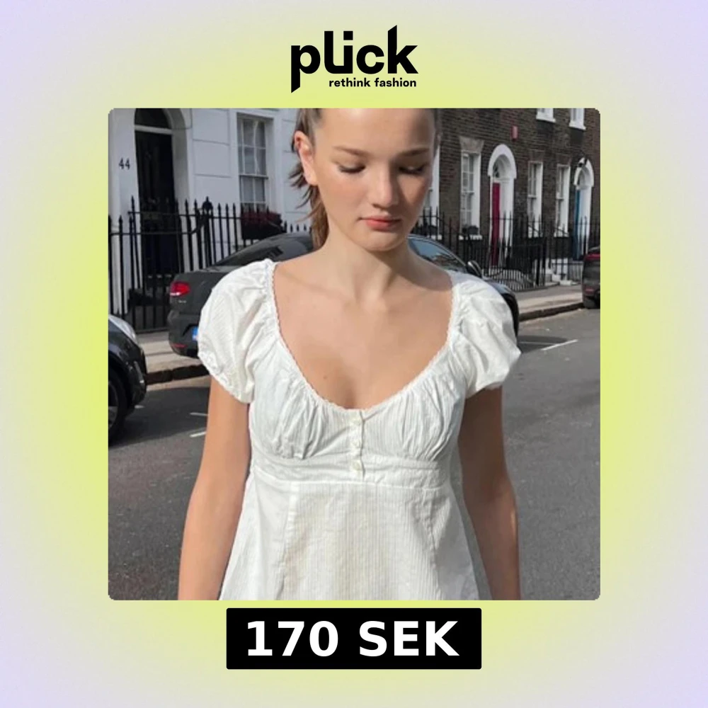 Söt vit blus med kort puffärm och två små knappar framtill. Blusen har en lätt rynkad byst och smock i ryggen för en bekväm passform. Perfekt för varma dagar och har en romantisk känsla.