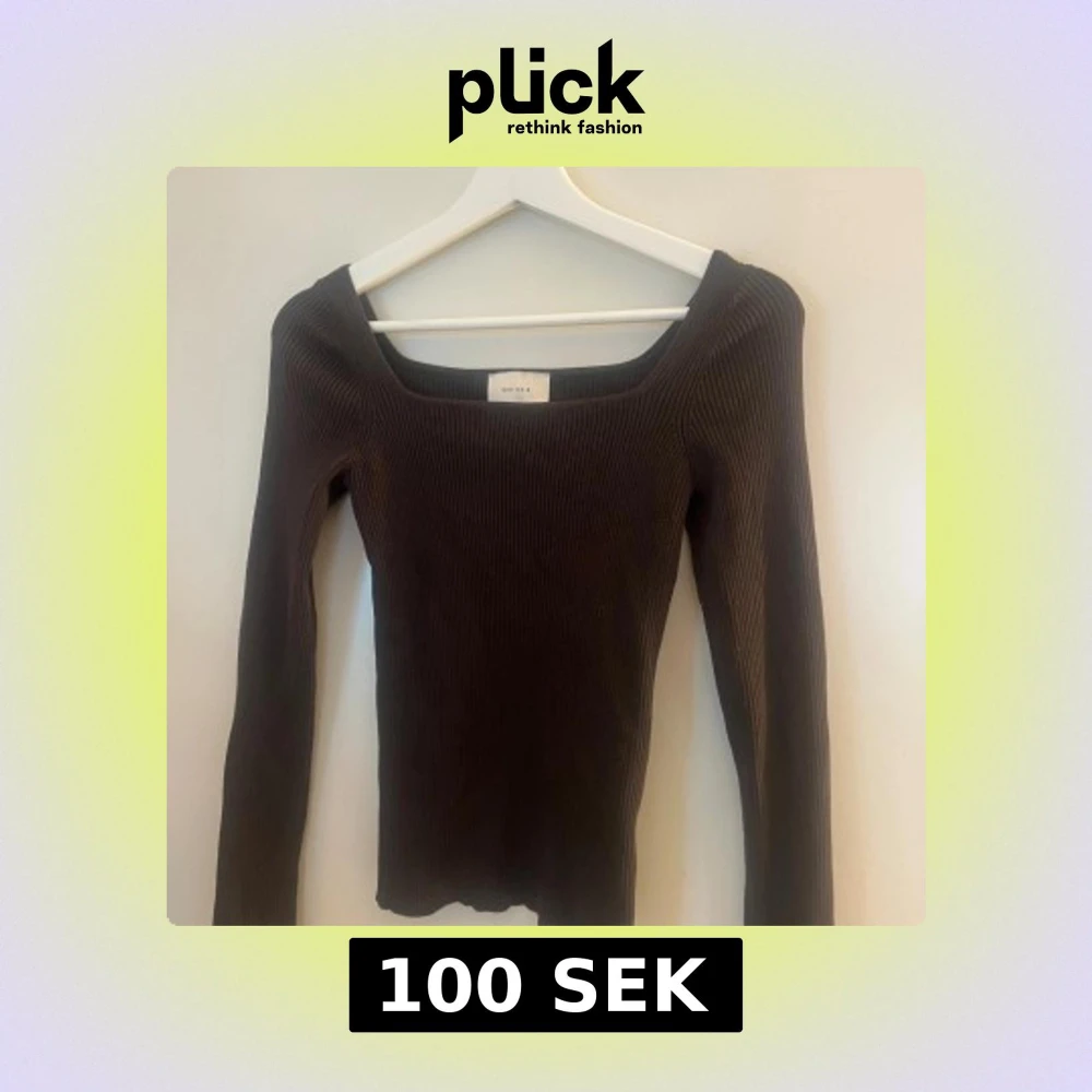 Säljer en brun långärmad topp från Neo Noir med ribbad struktur och fyrkantig halsringning. Modellen är tight och har en stilren, minimalistisk look som är enkel att matcha. Perfekt för dig som gillar basic med en twist.